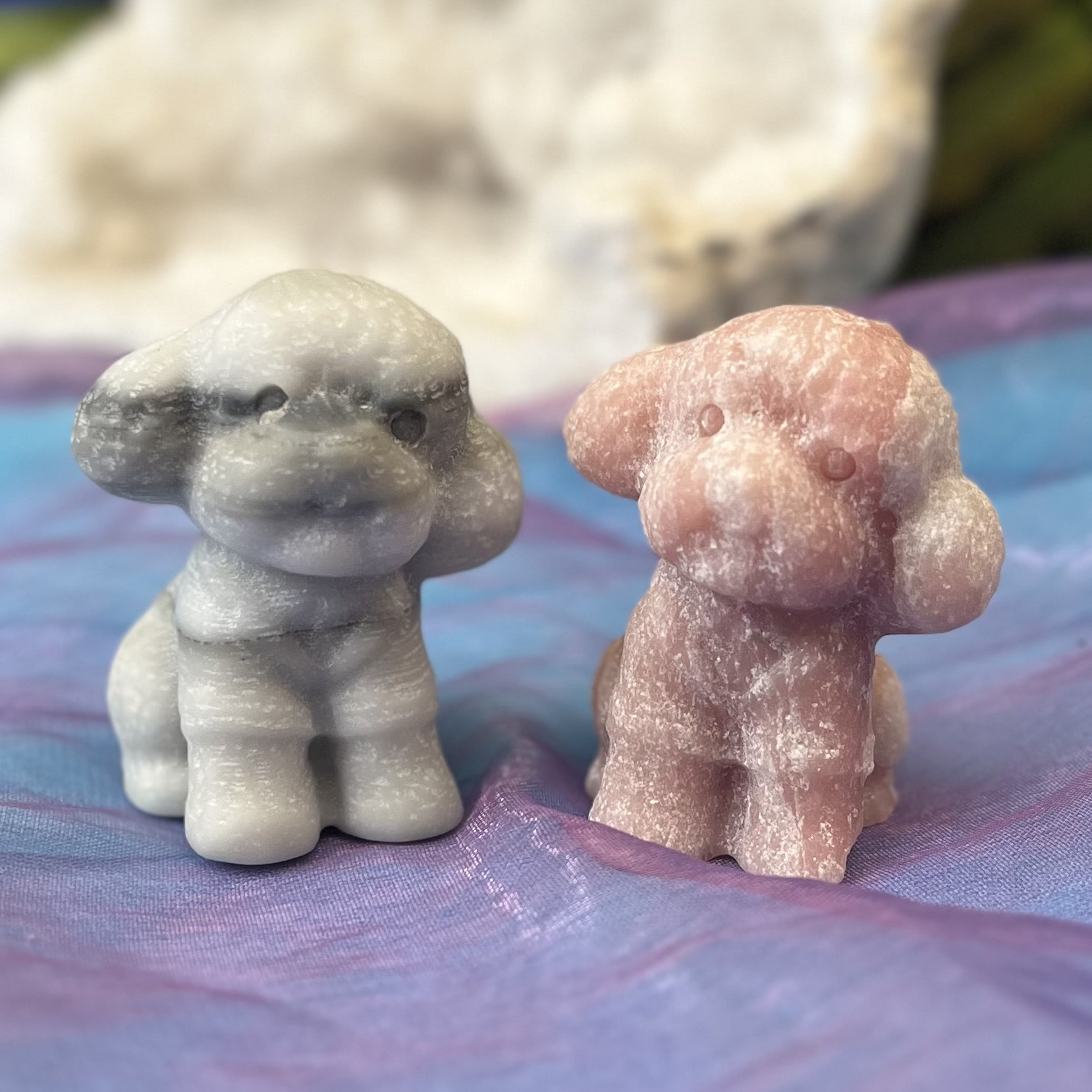 Crystal Toy Poodle Carvings. Size: 5 x 4 cm | Pink Opal & Taiji Stone