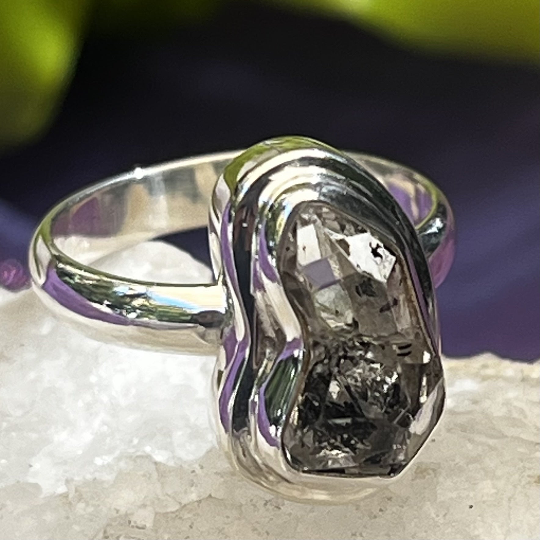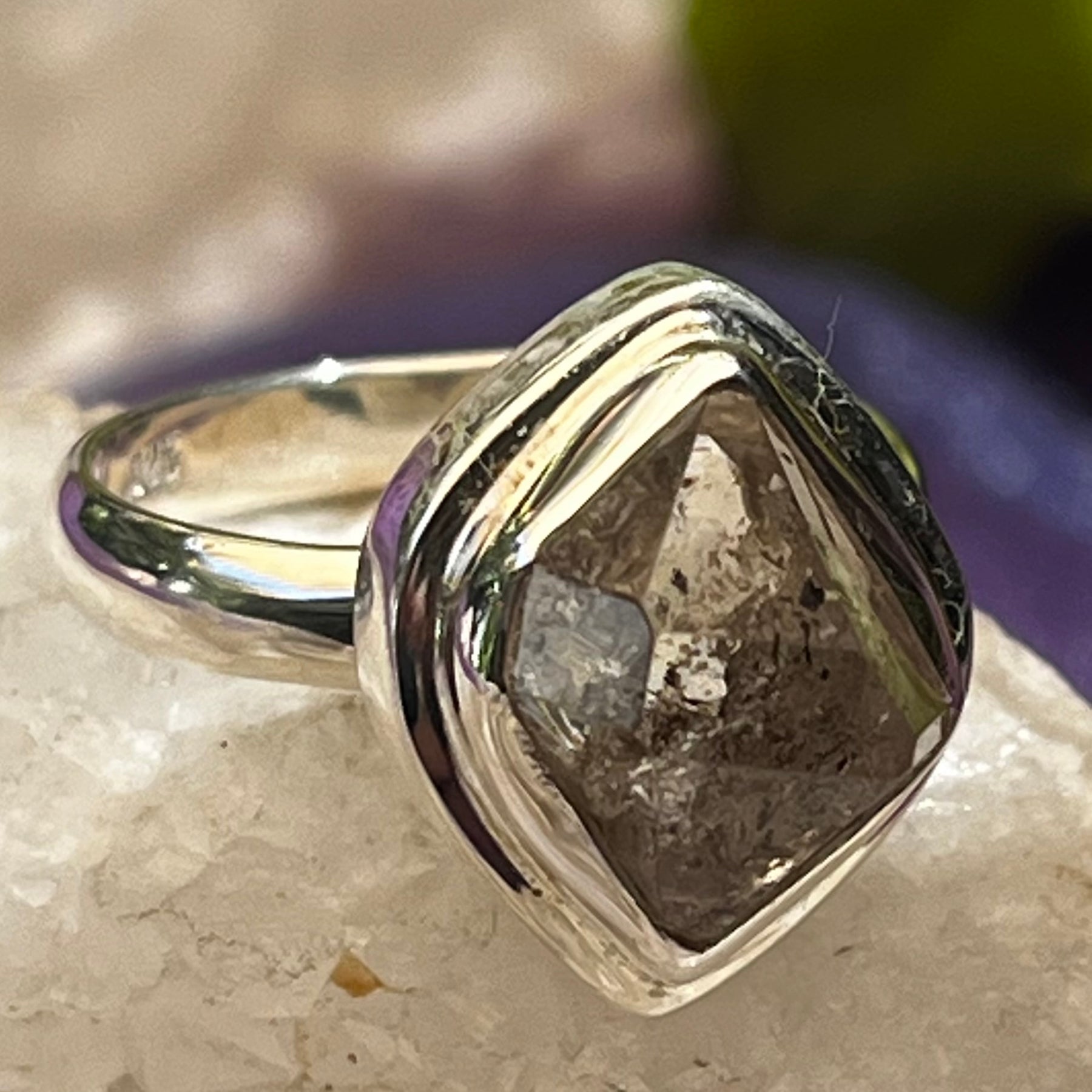 Raw Herkimer Diamond Ring. Made from Quality Sterling Silver.