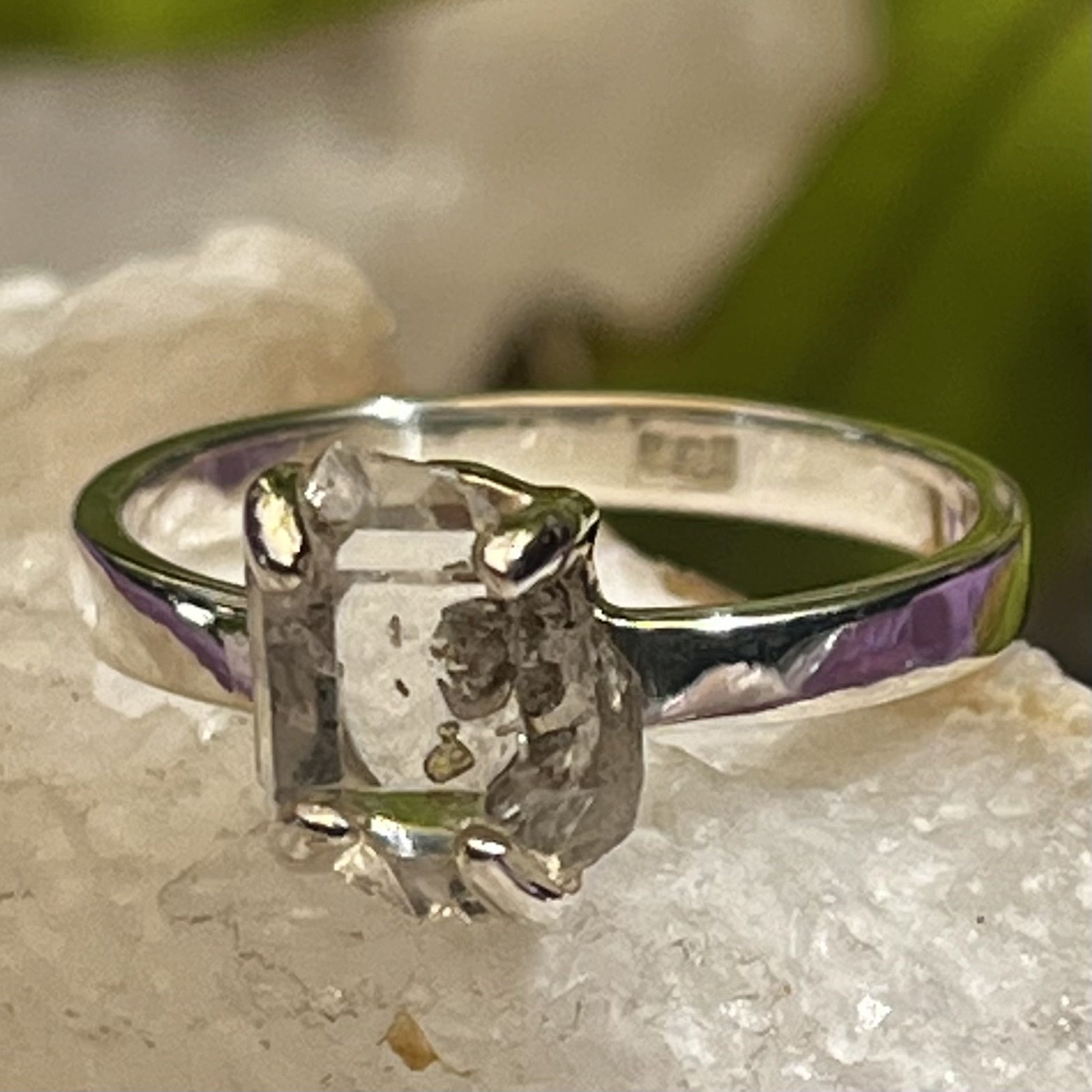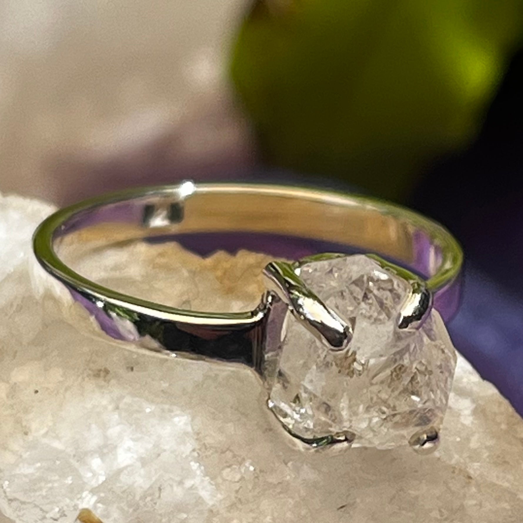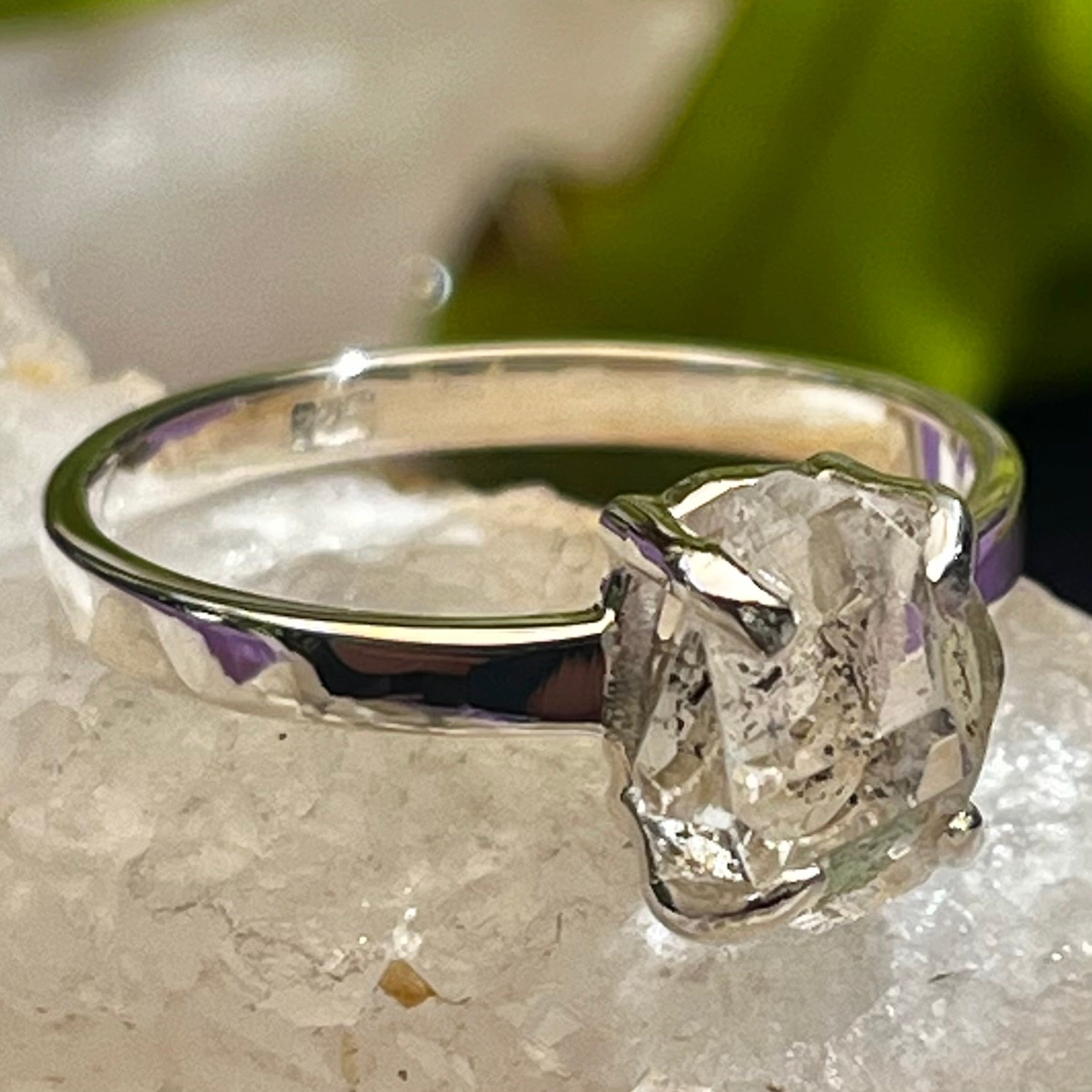 Raw Herkimer Diamond Ring. Made from Quality Sterling Silver.