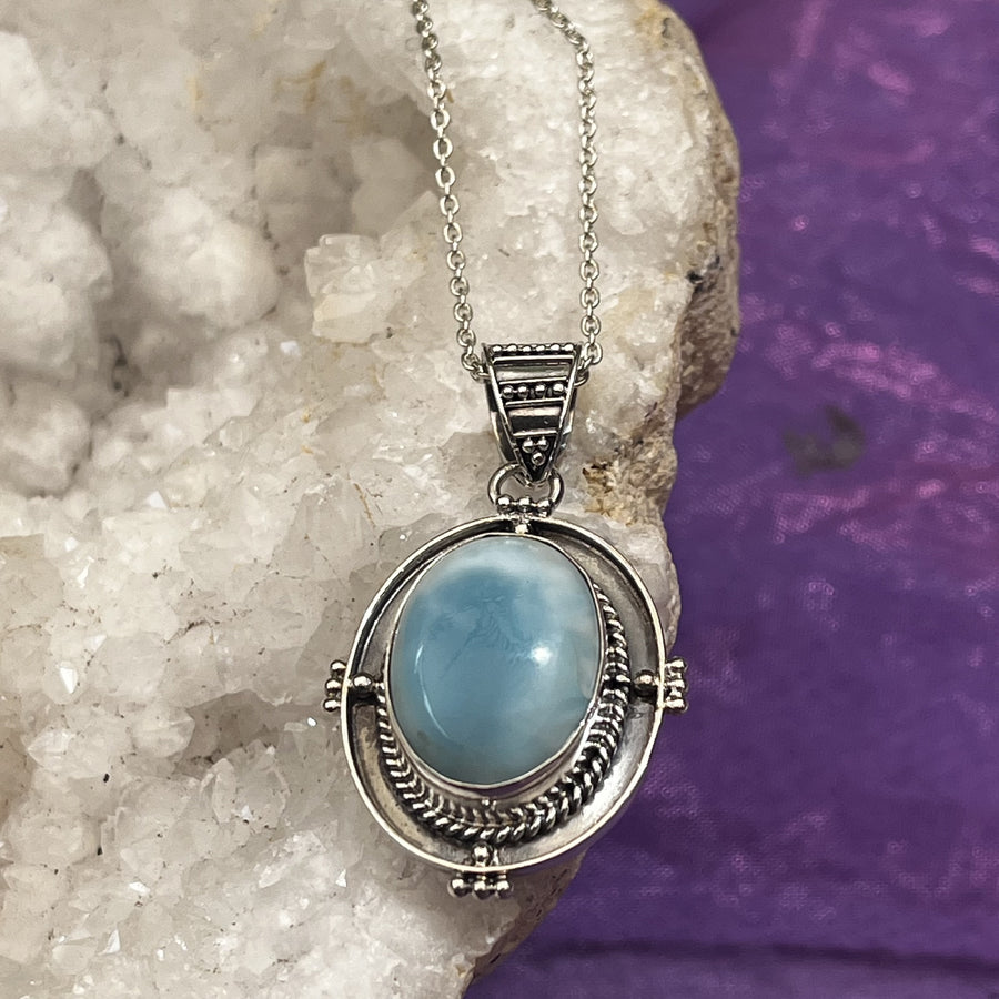 Necklace Larimar Oval Premium Quality 1.6 cm