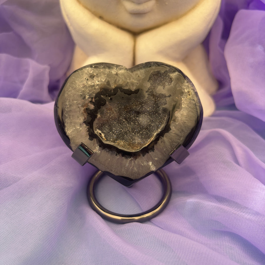 Heart Carnelian Druzy Black on Stand 9.3 cm