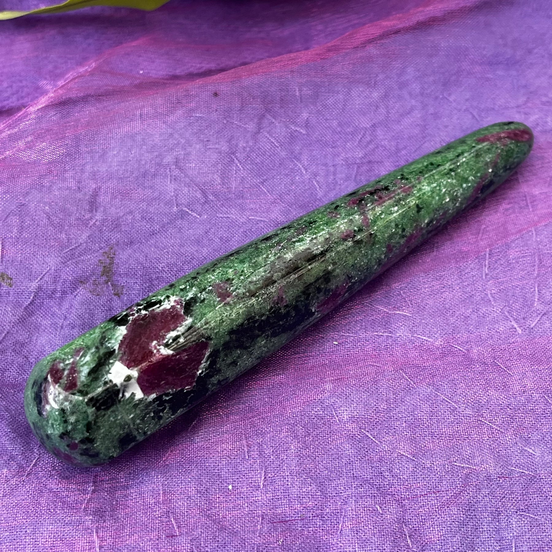 Tapered Ruby in Zoisite Wand. The wand is approximately 10 x 2 cm. The price is per wand.