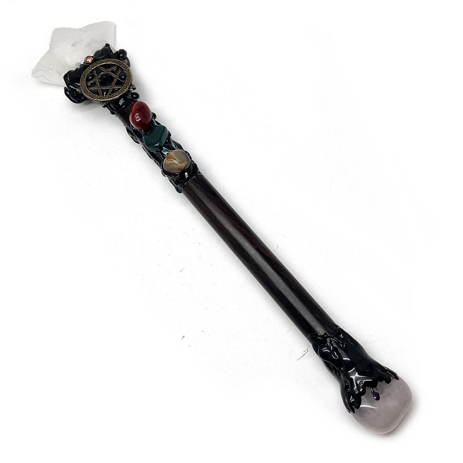 Wand Blue Flower Agate with Pentagram Stand | Carpe Diem With Remi
