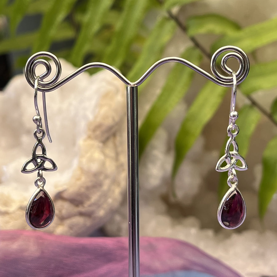 Earrings Garnet Teardrop Triquetra 3.4 cm