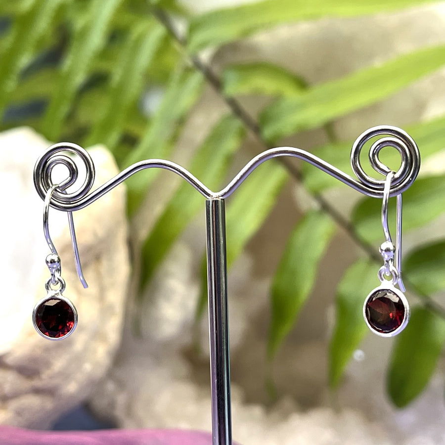 Earrings Garnet Round Faceted 2.2 cm