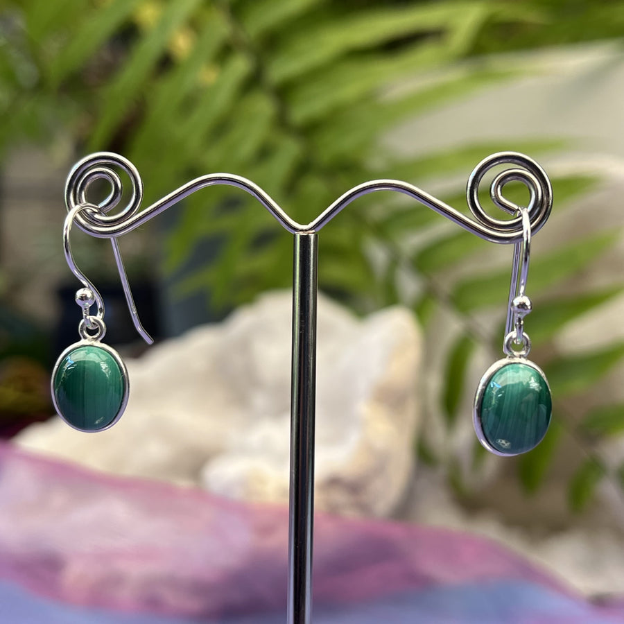 Earrings Malachite Oval 2.6 cm