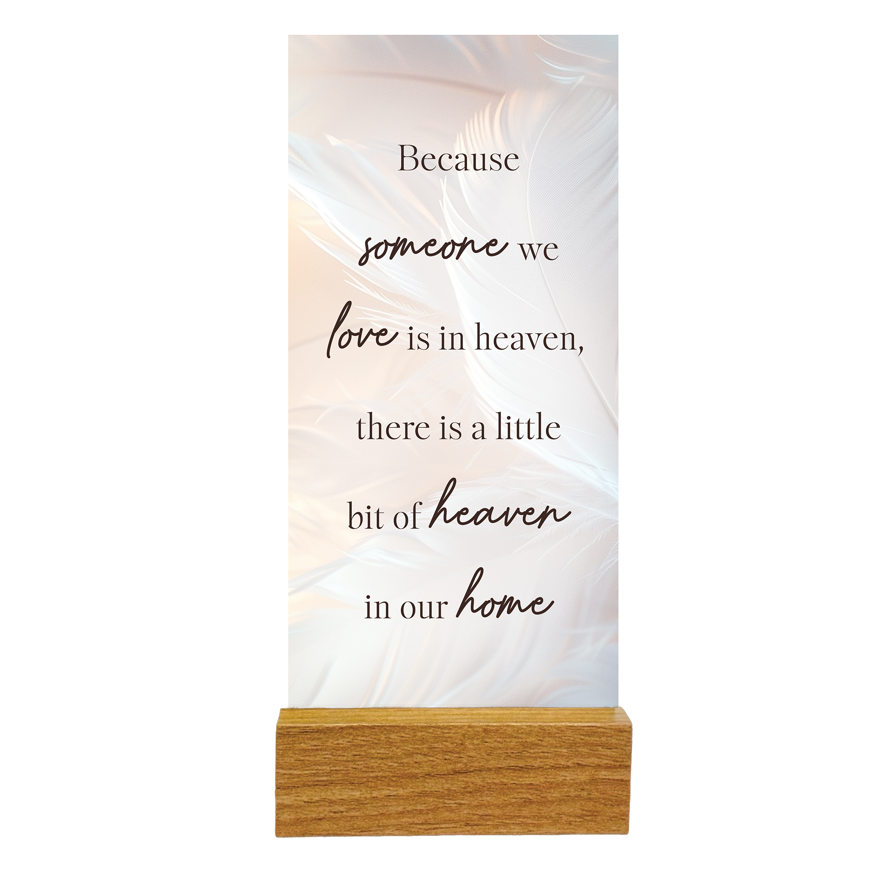 Glass Plaque with wooden stand. Heaven. Size: 19.5 x 3.8 cm.