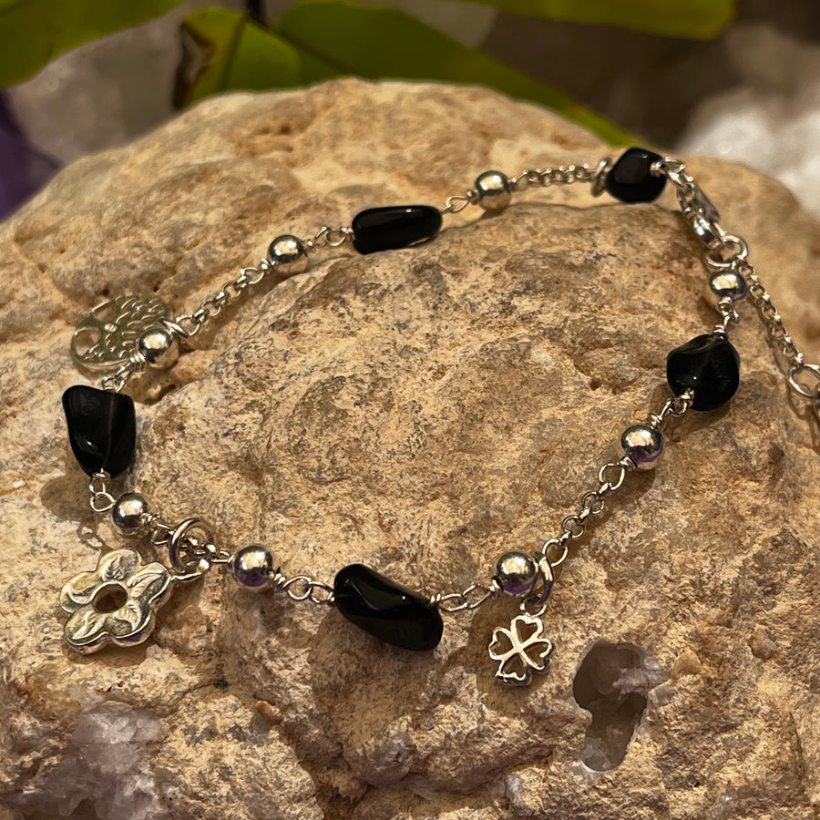 Bracelet Black Onyx Charms on Chain