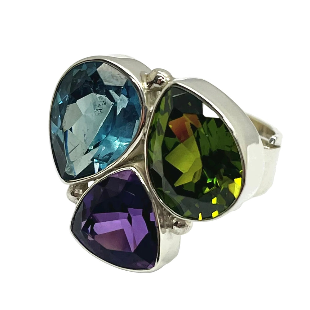 Ring Amethyst Peridot Blue Topaz Adjustable