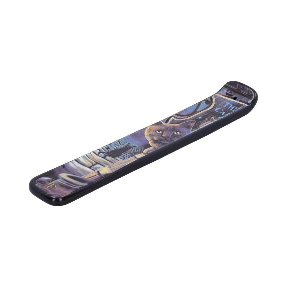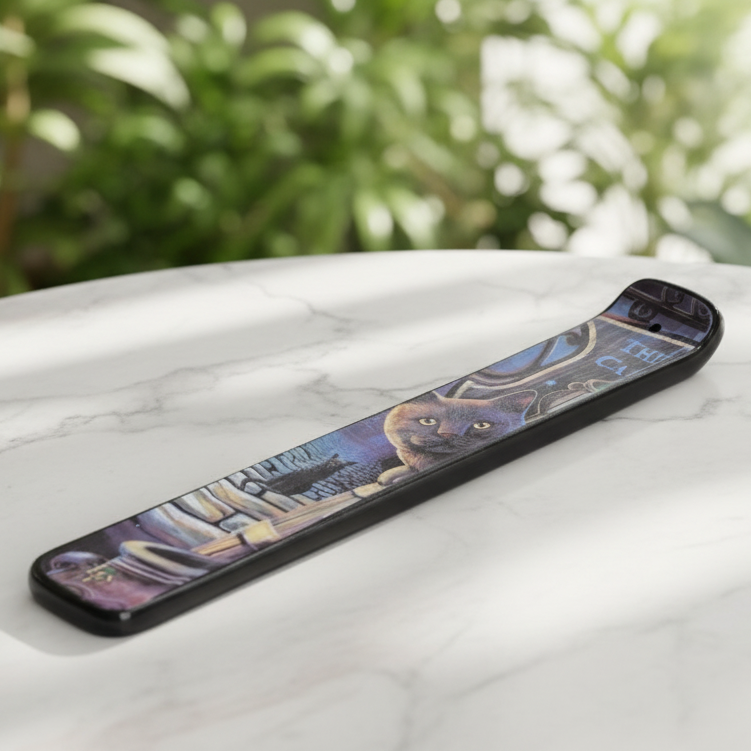 From the magical artwork of Lisa Parker, comes this Rusty Cauldron Incense Burner. Featuring her iconic Rusty Cauldron artwork of a mystic kitty who can be seen perched atop a barrel outside the rusty cauldron. Whilst behind him on the cobbled road, another feline can be seen gazing ahead, taking in its surroundings of the magical high street they find themselves on. Designed with a small hole at the top, suitable for holding your favourite incense sticks, this Rusty Cauldron Incense Burner is the perfect addition to any fantasy collection.