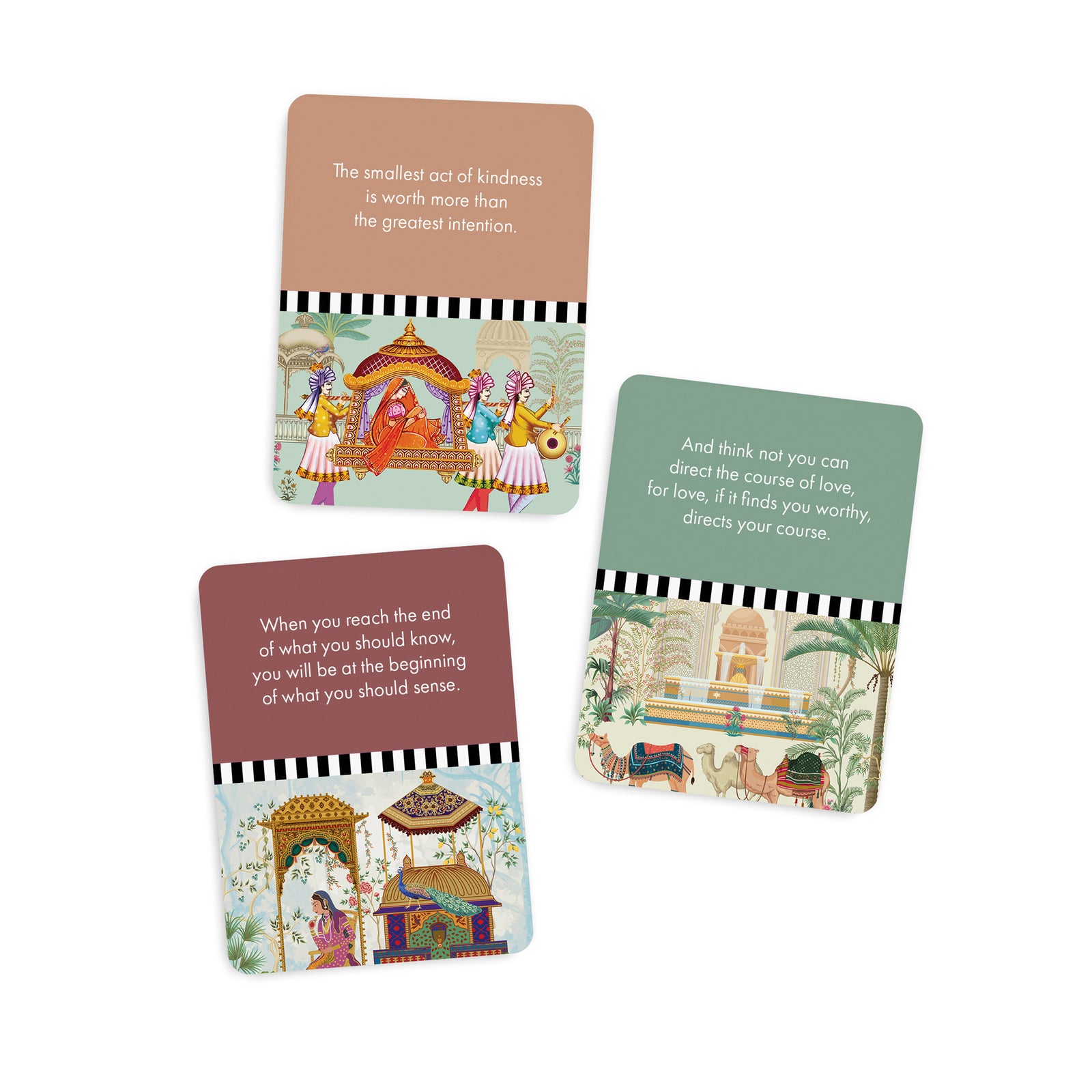 Size: 11.5 x 8.0 x 3.0 mm. Gift set of 24 affirmation cards with timber display stand. Foil details.